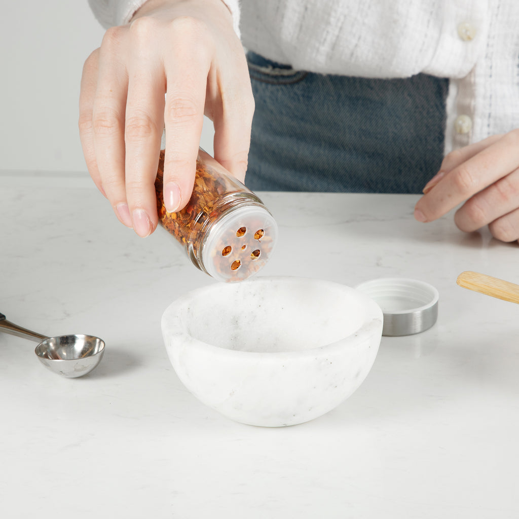 The rotating design ensures effortless access to all 20 glass jars. Each jar features an inner shaker lid and a brushed stainless steel cap for precise seasoning and modern aesthetic appeal.