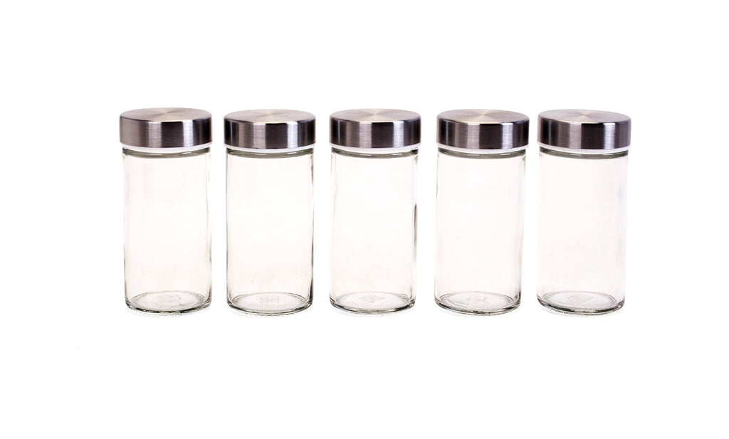 Orii 3 oz. Round Spice & Storage Jars with Stainless Steel Lids – Set of 5 Refillable Glass Containers for Kitchen & Crafts